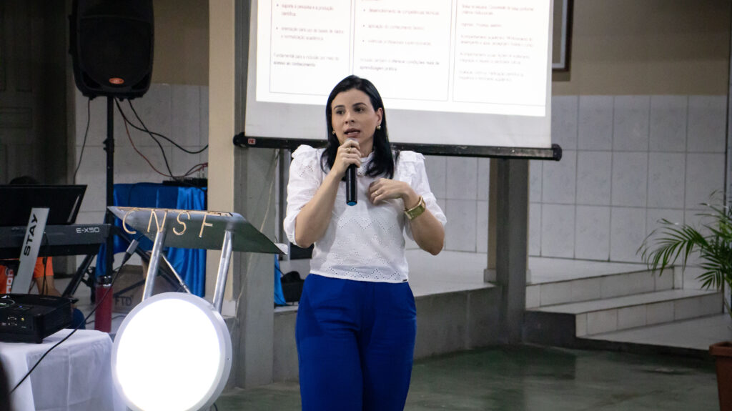 A abertura institucional foi realizada pela Diretora Geral, Rosária Silva Ribeiro, que destacou a inclusão como um compromisso transversal da instituição, presente tanto nas políticas acadêmicas quanto no cotidiano da sala de aula. Em seguida, a Diretora Acadêmica, Pauliérica de Sousa Carvalho, apresentou os fluxos institucionais da faculdade, reforçando a corresponsabilidade docente na construção de um ambiente acadêmico pautado no respeito, na permanência estudantil e na qualidade da formação.